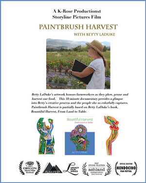 Paintbrush Harvest focuses on internationally known Ashland Oregon artist Betty LaDuke. Betty's art has long been an outlet for her causes and conscience. Her recent work celebrates Oregon field workers as they plant and harvest our food and flowers. This short documentary provides a glimpse into Betty's lively personality, her artistic process and her commitment to field workers. The vibrant wooden panels she creates grace public places from shops and universities to airports - reminding viewers of the timeless, universal process of food production.